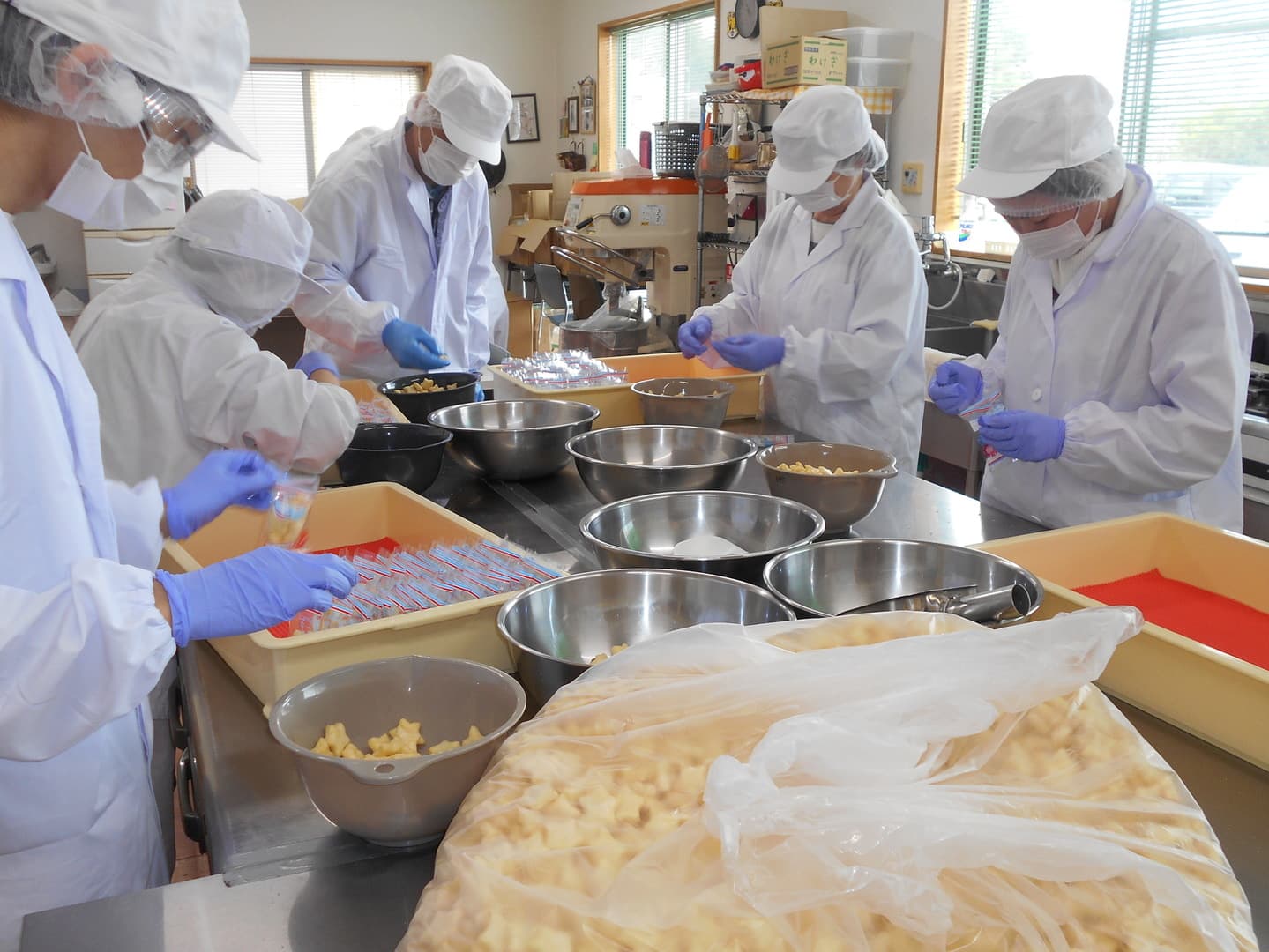 現在は久喜市に在る高砂製菓様より委託させて頂いた星型お煎餅の袋詰め作業を主として毎日作業をしております。